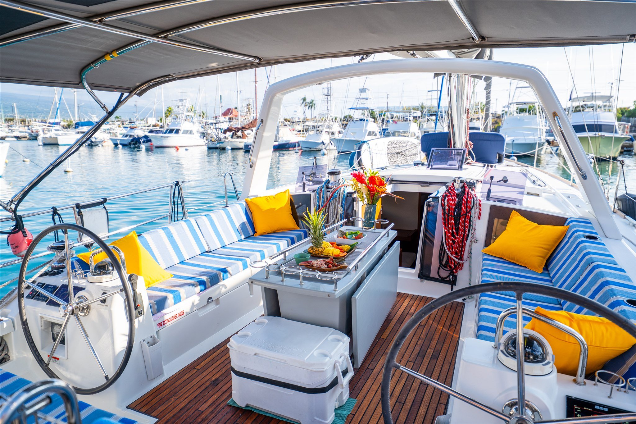Comfortable spaces: Shaded seating, cozy lounging areas, and an open, spacious deck perfect for ocean views and fresh breezes